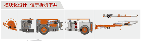 ZGYX-811針對窄薄礦脈開采方式及巷道尺寸特點(diǎn),專業(yè)化設(shè)計(jì)了具有高通過性的超窄鉸連拉式懸浮度盤,非常適合于地下超小巷道轉(zhuǎn)場作業(yè)。用采用模塊快拆連接的組合設(shè)計(jì),可非常方便的實(shí)現(xiàn)整機(jī)分段拆解下井及井下組裝工作。