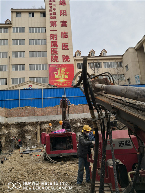 四川省綿陽富臨醫(yī)院(綿陽中藥高等?茖W(xué)校第一附屬醫(yī)院)的建設(shè)中,志高機械錨固鉆機志堅F55S鉆車在現(xiàn)場從事基坑作業(yè),為醫(yī)院的建設(shè)助力。