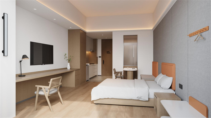 專為客戶來訪接待、培訓(xùn)、研討而設(shè)的星級酒店式公寓,提供全系精裝商務(wù)標(biāo)間及豪華套間,并設(shè)有酒店式洗衣房,旨在為來訪人員提供舒適的居住體驗。