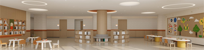 (3)兒童區(qū):兒童活動區(qū)配備定制矮桌書架與活動墻,打造親子互動平臺;另外還設(shè)有小學(xué)自習(xí)室、兒童休息室及母嬰室,支持員工子女學(xué)習(xí)休息。