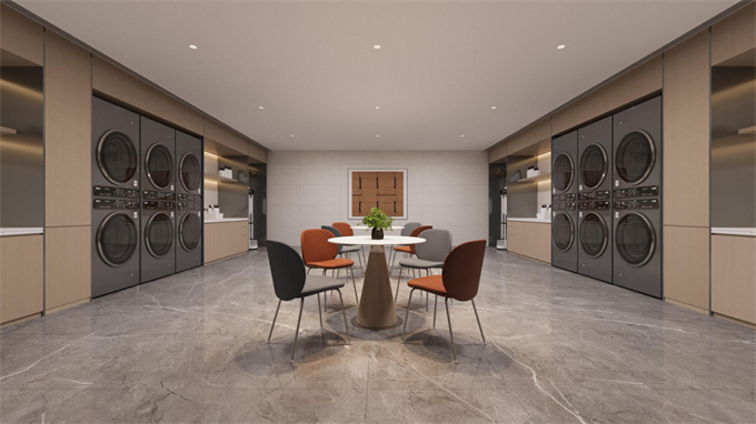 (2)洗衣房:每個樓層均設(shè)有酒店式洗衣房,工業(yè)級洗衣機(jī)矩陣,解放員工的雙手。