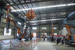 [2018-06-26]2018年6月26日,中鐵隧道局和浙江志高機(jī)械股份有限公司合作研發(fā)的MT11A型隧道錨桿臺(tái)車(chē)驗(yàn)收暨產(chǎn)品發(fā)布會(huì)在浙江衢州舉行。慶典儀式布置在浙江志高機(jī)械鉆機(jī)裝配車(chē)間,中鐵隧道集團(tuán)有限公司專(zhuān)用設(shè)備中心總經(jīng)理蒙先君和浙江志高機(jī)械股份有限公司董事長(zhǎng)謝存帶領(lǐng)各自專(zhuān)家組和團(tuán)...
