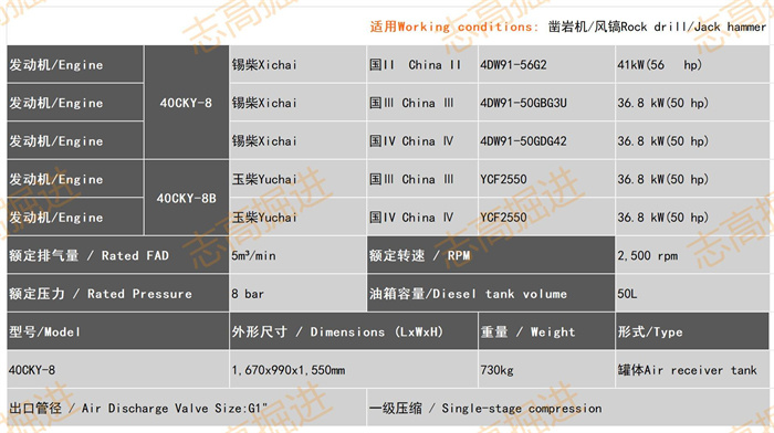 40CKY-8 柴動(dòng)螺桿式空氣壓縮機(jī)
